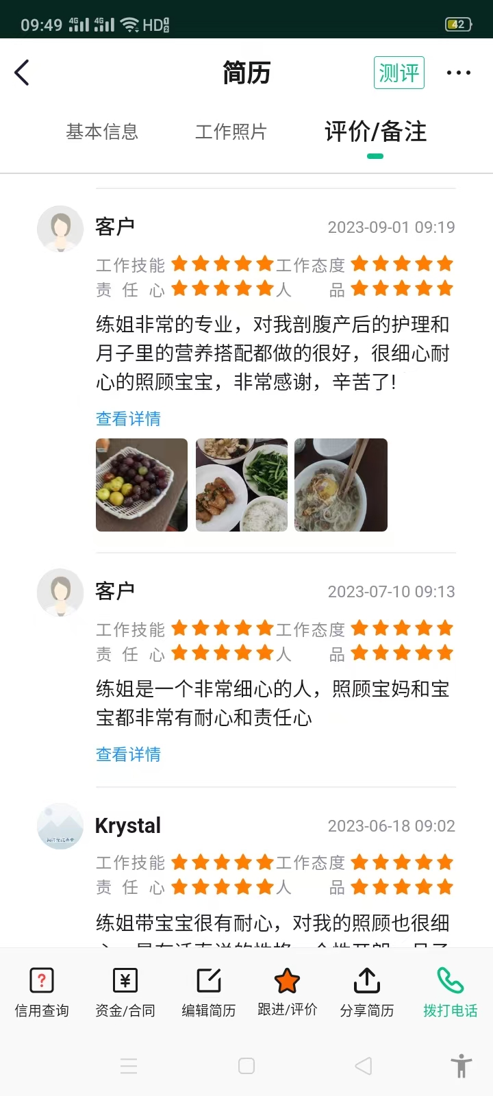 专业技能:中餐、面食、月子餐、开奶、母婴护理、保洁婴儿游泳、婴幼儿护理、恶露观察、洗澡抚触、肚脐护理、通乳、黄疸分辨