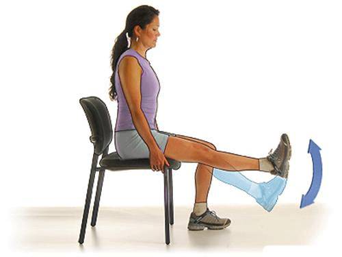 动作方法:坐着,两个腿轮流抬起,每天抬起20多次,抬到水平的地方,停下来10几秒,早晚来一遍。