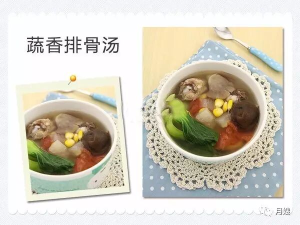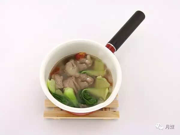 以猪骨汤为汤底熬煮各种蔬菜,既能增加营养,也让汤水的味道更加清甜。以各种蔬菜为汤料,大大丰富了产妇摄入食材的多样性,美味又健康。